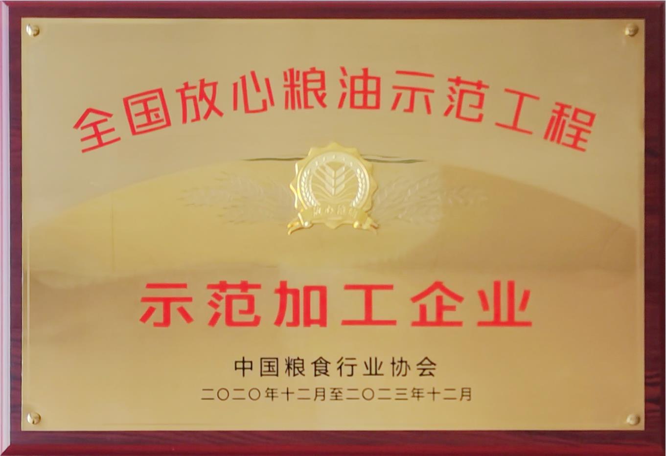 全国放心粮油示范工程示范加工企业牌匾